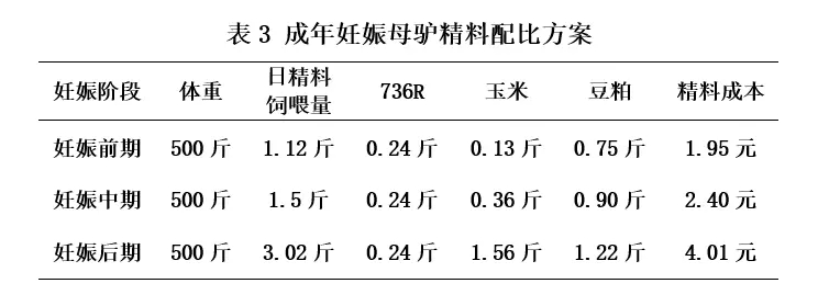 成年妊娠母驴饲喂方案